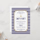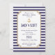 Personalize este Convite para Janto de Ensaios Náuticos moderno, na moda, totalmente personalizável. Design azul e branco listrado, definido como um modelo para uma fácil personalização. Todos os elementos são flexíveis e podem ser movidos, redimensionados ou removidos. Este design é uma versão com apenas nomes e não nomes formais.