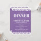 Um convite de janto do estilo papel picado com um fundo festivo roxo.