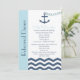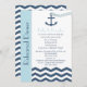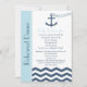 Este convite de janto náutico moderno é apresentado em tons de azul. Uma âncora com uma cadeia cardíaca é o ponto focal. Os nomes da noiva e do noivo aparecem abaixo da âncora. Um pequeno poema aparece a seguir com todo o janto de ensaio, convidando detalhes abaixo. Há um pequeno mar zigue-gástrico no fundo do convite para adicionar um toque divertido. Um convite de excelente para um janto de ensaio de náutica. Direitos autorais