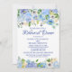 Bonito convite de janto de cor d'água floral. Flores de aquarela azul macia criam uma exibição romântica. O design floral também inclui os florais de marfim e um toque de roxo. Greenery mantém essa design romântica aberta e arejada. O Janto de ensaio é escrito num grande guião fluido. O restante do texto é um estilo de bloco elegante. Muito fácil substituir o texto de exemplo pelo seu.