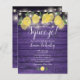 Com limões verdes e luzes de cordas bonito em um fundo de madeira rústica roxa, este convite de orçamento de chá de panela divertido pode ser personalizado com suas informações especiais de evento. Projetado por Thisnotme©