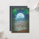 Convite romântico e elegante para casamento, com palmeiras, noite, lua, mar ou oceano e cordas de luzes. Convite perfeito para praia para o casamento romântico das luzes cintilantes.