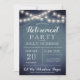Convite de festas de aposentadoria russo com luzes de cordas e uma combinação de script e tipografia de rosto aberto em um fundo azul-ombre. Perfeito para a comemoração da aposentadoria masculina ou feminina. Para mais personalização, clique no botão "Personalizar" e use nossa ferramenta design simples para modificar este modelo.