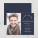 Um valor para o alternativo do ORÇAMENTO em tamanho menor de 4,5 x 5,6" de semirbrilho de 110 lbs, que é de espessura semelhante a um cartão postal (no entanto, não é adequado para uso como cartão postal). POR FAVOR, OBSERVE QUE HÁ UM convite por folha. Convite para Marinho do Partido aniversário de 21 anos de Foto do Orçamento. Um design totalmente personalizável, basta substituir a foto de amostra por sua própria e personalizar o texto para seus detalhes. Você também pode alterar o plano de fundo azul do marinho em ambos os lados e a cor e estilo do texto, se desejar, por meio da opção Personalizar Mais.