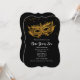 Convite para Véspera de ano novo de Máscara Dourada de Feriado de Ano Novo, em Preto e Branco