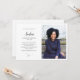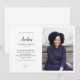 Este elegante convite memorial apresenta uma grande área fotográfica ao lado do nome do seu ente querido, realçado numa letra de escrita graciosa. As folhas esboçadas no fundo fornecem um sutil sussurro de beleza que permite que a foto e o nome tomem palco central. Adicione fotos adicionais, um poema, uma letra de música ou instruções simples aos seus convidados no verso, se preferir.