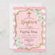 Meninas Baptism Convite para design de ouro branco rosa elegante com brilho falso. Na moda com rosas brancas.