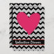 Envie este convite de tendências e design de na moda para o seu janto de Namorados ou outro evento de Namorados. Este convite é totalmente personalizável para as suas informações para o seu evento. Um pop cardíaco vermelho assimétrico em cima desse sofisticado design ziz zag preto e branco. Um lado desse anúncio de convite tem o design de fevron preto e branco e um grande coração vermelho. Um bar preto está abaixo do coração com palavras personalizáveis "Janto Namorados". O outro lado tem uma área preta com uma borda de diafragma com pequenos corações aleatórios e toda a sua informação de eventos. Totalmente personalizável. Corresponder com carimbos coordenadores, envelopes, adesivos e etiquetas de endereço de retorno.
