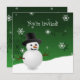 Convide convidados para a sua festa de férias com este convidado de Natal Verde da Cena de Neve Verde. Convidar design apresenta um feliz boneco de neve em uma cena de vento de neve em um fundo verde adornado com flocos de neve de cor que você pode personalizar com seus detalhes de festa e RSVP. Itens adicionais de presentes e feriados disponíveis com este design também.