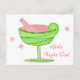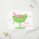 Uma bebida rosa frutada em um copo sombreado verde. Uma palhinha espiral rosa e uma cunha de limão acentuam este convite fofo para a noite das meninas.