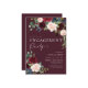 Boho Burgundy e Convite para Festas de noivado florais Blush. Esse convite se caracteriza por boho burgundy e rosas e flores esmagados com duas fontes modernas de alta classe que moldam as tendências dos eventos festivos atuais e futuros.