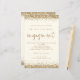 Convite Dourado para Noivado de Creme Glitter. Um tamanho maior de 5,5" x 8,5" a um preço orçamentário, em um STOCK CARD SEMI GLOSS de 110 lb, excelente de convites, aproximadamente na mesma espessura de um cartão postal, ou um estoque LINEN elegante de 110 lb - para um luxo, ligeiramente mais fino, com um valor de excelente. OBSERVE QUE OS ENVELOPES OPCIONAIS SÃO UM POUCO MAIORES EM TAMANHO A 6,75" x 9" aprox. Este alternativo de tamanho de orçamento também está disponível em outras opções de papel. O papel FELT de 100 lbs é colorido por buff, NÃO branco, então adiciona um toque rústico. O estoque de papel MATTE de 80 lb é branco brilhante, para impressão nítida, excelente para seus menus e programas, enquanto o papel SATIN de 80 lb é fino e leve, ideal para gabinetes. As bordas de confete de brilho falsa em ouro estão no topo e no fundo e também no verso, com fundo creme e texto dourado. O noivado é definido num estilo moderno de escrita manual. Personalize facilmente o resto do texto para você.