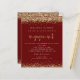 Um valor para o alternativo do ORÇAMENTO em tamanho menor de 4,5 x 5,6" de semirbrilho de 110 lbs, que é de espessura semelhante a um cartão postal (no entanto, não é adequado para uso como cartão postal). POR FAVOR, OBSERVE QUE HÁ UM convite por folha Burgundy Dourada Glitter Noivado Invitation. As bordas de confete com falso brilho de ouro elegantes estão no topo e no fundo e também nas costas, sobre um fundo burgundy. O noivado é definido num estilo moderno de escrita manual. Personalize facilmente o resto do texto para você.