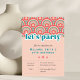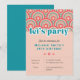 Adicione uma vibração retroativa infantil a QUALQUER festa de aniversário da IDADE com estes convites bonitos. Fácil de personalizar. Inscrição vintage achatada com uma inscrição azul brilhante, "vamos", design de flores e arcos. Desenhar sobre temas minimalistas e hippies do século médio. Cores modernas de rosa poeirento pastel, rosa quente e tons de azul.