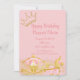CONVITE DE ANIVERSÁRIO PINK E PRINCESA DOURADA COM DESIGN CARRUAGEM, DETALHES DOURADOS DO GLITTER.