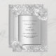 Fundo de aspecto fino prateado decorado com flores, flores e brilho fino prateado, brilhos. Personalize e adicione seus nomes e detalhes da festa. Letras negras. 1 folha = 1 convite impresso de borda a borda.