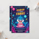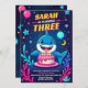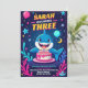 Faça um salto no seu dia especial com este adorável convite de aniversário para o tubarão bebê! Apresentando um bolo alegre, elementos submarinos coloridos, e um céu noturno mágico, esta design é perfeita para crianças e bebês que amam o oceano. O texto personalizável facilita a personalização com os detalhes do seu partido. Excelente para festas de 1rua a 5!