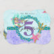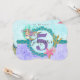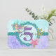 Caldeira de Aquarela, conchas, tridente, escamas e estrela-estrela Baby Girl Invitation with Age & Name and Custom text in Purple, Aqua & Teal with bubbles and Dourado Glitter Accents. Uma design de sereia gira divertida com Texto Personalizado.