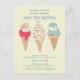 Novo para o Verão de 2024. Nosso cartão-postal de convite "Sorvete, Gritar Que Todos Nós Gritares Feliz 18º Aniversário!" Três cones retrorados de sorvete de aquarela com sorvete vermelho, branco e azul patriótico e aspersores ocupam o palco central acima de seus detalhes de festa de aniversário.