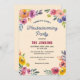 Modelo de convite para aquecimento de casas, branco, colorido e botânico, com flores de aquarela com fundo bege quente.