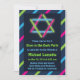 Um convite muito colorido e divertido que é excelente para um bar ou morcego mitzvah. O convite apresenta a estrela de David com muita cor. Excelente para uma festa de dança só para adolescentes ou uma celebração para todos!