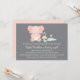 Um passarinho azul guarda um guarda-chuva e fica doce e pacientemente ao lado de um bebê elefante rosa vestindo um par de fraldas com um pino de fralda rosa. Estes convites para o bebê são perfeitos para a nova mãe esperar uma menina. Trabalho de arte © Chrissy H. Estúdios, LLC. Todos os direitos reservados.