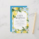 O convite para o bebê do tema Lemon apresenta ilustrações de cor d'água de limões, flores de limão e padrão de azulejo mediterrânico. Personalize adicionando nomes, data, hora e outros detalhes. Este convite para o bebê limão é perfeito para chás de fraldas temáticos do verão e do Mediterrâneo.