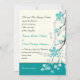 O convite personalizado para o casamento da Magnolia Branch Turquoise, com um belo ramo de magnólia com flores e botões de turquesa. Ivory, turquesa, preto, cinza.