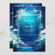 Celebre o seu amor costeiro com este belo cartão de casamento. As ondas vibrantes do oceano e os conchas coloridas criam uma vibração pré-desidratada, complementada por um trabalho de arte generativo. Personalize com seu monograma e detalhes para uma celebração verdadeiramente notável. Crie uma experiência inesquecível que reflita seu vínculo único com um pano de fundo de matizes azuis e vibes de praia de verão.