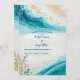 Celebre o seu amor costeiro com este belo cartão de casamento. As ondas vibrantes do oceano e os conchas coloridas criam uma vibração pré-desidratada, complementada por um trabalho de arte generativo. Personalize com seu monograma e detalhes para uma celebração verdadeiramente notável. Crie uma experiência inesquecível que reflita seu vínculo único com um pano de fundo de matizes azuis e vibes de praia de verão.