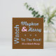 O Casamento Real é uma desculpa para convidar amigos em altas horas! O nosso convite Watch Harry and Meghan Tie The Knot pode ser facilmente personalizado adicionando seus detalhes personalizados no verso sem custo adicional! Ou entre em contato conosco e adicionaremos seus detalhes personalizados para você (claro, sem custo adicional). O design de inspiração Mod apresenta um fundo marrom combinado com texto em rosa e azul claro. <em>Os envelopes estão incluídos com descontos por volume disponíveis! ()