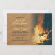 Modelo de convite para um chá de casamento. Areia fundo com imagem de fogo queimada em placas horizontais. Modelo texto é texto impresso preto com script amarelo para título de celebração e nomes de honrarias.