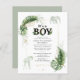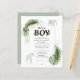 A girafa temida da floresta selvagem, e os rapazes elegantes, o convite para chá de fraldas de safari, com uma girafa, um elefante, folha de ouro e folhas verdes. Perfeito para os convites de um bebê