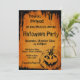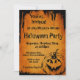 Convite de Halloween para uma festa de Halloween com abóbora em um fundo laranja. Tenha uma festa de Halloween para lembrar!
