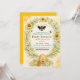 Celebre seu dia especial com este Convite Floral Honey Garden com um design de girassol e flores silvestres em aquarela suave com sutils acentos de favo de mel. Este convite encantador com tema de abelhas combina elegância rústica com uma estética de jardim doce, tornando-o perfeito para um chá de bebê "O que será o Bebê Abelha", convite de revelação de gênero de abelhas, festa de girassóis e abelhas, ou celebração de abelhas melíferas.