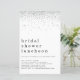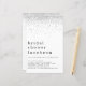 Convidado de Luncheon de Chá de panela de Prata para Literação. Um tamanho maior de 5,5" x 8,5" a um preço orçamentário, em um STOCK CARD SEMI GLOSS de 110 lb, excelente de convites, aproximadamente na mesma espessura de um cartão postal, ou um estoque LINEN elegante de 110 lb - para um luxo, ligeiramente mais fino, com um valor de excelente. OBSERVE QUE OS ENVELOPES OPCIONAIS SÃO UM POUCO MAIORES EM TAMANHO A 6,75" x 9" aprox. Este alternativo de tamanho de orçamento também está disponível em outras opções de papel. O papel FELT de 100 lbs é colorido por buff, NÃO branco, então adiciona um toque rústico. O estoque de papel MATTE de 80 lb é branco brilhante, para impressão nítida, excelente para seus menus e programas, enquanto o papel SATIN de 80 lb é fino e leve, ideal para gabinetes. Muito espaço em branco para um estilo contemporâneo e uma borda de cintilação em prata em cada lado para um pequeno brilho. O cabeçalho da ocasião é grande em na moda com os detalhes na parte inferior. Personalize facilmente o texto para seus próprios detalhes.