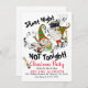 Engraçado convite de festas de Natal com gnomos dançantes. O convite de Natal contém a frase "Noite Silenciosa NÃO Tonita"