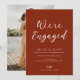 um design de letras simples de tons terracotta e uma imagem personalizada. Você pode personalizar o texto, a imagem e os detalhes de cor neste modelo de convite de festa de noivado.