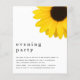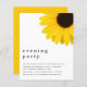 O Partido da Noite Contemporânea de Girassol Convidam. Um alternativo MENOR de 4,5" x 5,6", compatível com o orçamento. Disponível em um STOCK de PLACA SEMI GLOSS 110 lb ou um STOCK de PAPEL THINNER SATIN FINISH 80 lb. Os envelopes são um extra opcional. Um girassol gigante está no canto superior direito e o cabeçalho da ocasião é, em grande parte, o esquerdo em na moda em baixo, com os detalhes em baixo. Personalize facilmente o texto para seus próprios detalhes.