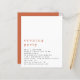 Texto Simples Teracotta, Festa de Casamento da Noite Convidada. Um alternativo de 4,5 pol x 5,6 pol com preço inferior. Disponível em um STOCK DE CARTÃO SEMI GLOSS 110 lb, que é a opção padrão (recomendada para convites), OU um STOCK DE PAPEL THINNER SATIN FINISH 80 lb (ideal para gabinetes). Os envelopes são opcionais extras e são ligeiramente maiores que o tamanho da placa.O cabeçalho está em na moda grande minúsculo em teracotta com os detalhes abaixo e muito espaço em branco em forma quadrada para um estilo contemporâneo. Personalize facilmente o texto para seus próprios detalhes. Um terracota coordenador também está nas costas.