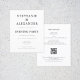 Convite de festas Simples de Casamento de Código QR de Orçamento Noite. Um valor totalmente personalizável para dinheiro menor de 4,5 x 5,6 polegadas é usado como padrão para a opção de semirologia, que é recomendada para convites e é de espessura semelhante a um cartão postal. A opção satin é um papel muito mais fino. As cores e o tipo da fonte podem ser alterados através do menu de edição. Você também pode alterar as cores do texto e do plano de fundo em ambos os lados, se desejar.
