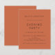 Simples Teracotta, Festa de Casamento à Noite Convidada. Um alternativo de 4,5 pol x 5,6 pol com preço inferior. Disponível em um STOCK DE CARTÃO SEMI GLOSS 110 lb, que é a opção padrão (recomendada para convites), OU um STOCK DE PAPEL THINNER SATIN FINISH 80 lb (ideal para gabinetes). Os envelopes são um extra opcional e são ligeiramente maiores que o tamanho da placa. Fácil de personalizar o texto para seus detalhes e alterar as cores da tipografia e do fundo em cada lado, se você quiser, pode ser alterado para qualquer opção ou sua escolha por meio da opção personalizar mais.