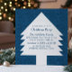 Reúna pessoas amadas para celebrar a temporada com este Convite de festas na moda Azul de Árvore de Natal Nadador. Apresentando uma silhueta branca e nítida de árvores de férias colocada sobre um fundo elegante de espirais, esta design combina tipografia festiva com um simples layout para mostrar seus detalhes de festa de forma elegante. Perfeito para encontros de férias grandes ou pequenos, o padrão giratório e a design moderna criam um sentimento caloroso e convidativo que dá o tom para uma celebração memorável de Natal.