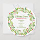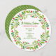 Convite de festas de Natal circular único, feito em branco, com gráficos de uma coroa verde de folhas com morangos vermelhos. O verso do convite é feito em verde com um pequeno padrão de bolinhas branca. Personalize todos os campos de texto do seu evento de feriado. Os produtos correspondentes estão disponíveis.