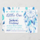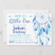 Watercolor Dream Catcher em tons de azul para o primeiro convite de aniversário de um menino.