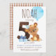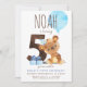 Este convite para a quinta festa de aniversário apresenta um ursinho de pelúcia com chapéu de festa azul. A parte de trás do convite tem um padrão de gingham castanho; perfeito para a festa de aniversário 5 temática de animais de floresta masculina. Personalize o convite com seus detalhes e você tem as opções para comprar convites impressos ou um download digital.