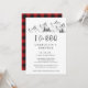 O convite Rustic Wilderness Buffalo I Do BBQ é ideal para uma festa com tema de montanha. Nosso evento inspirado na montanha apresenta uma cena de montanha e floresta ilustrada à mão com um fundo xadrez de búfalo inspirado em cabana, perfeito para a sua festa de engajamento I do BBQ.