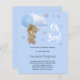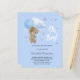 Para um chá de fraldas celebrando um menino. Um fundo azul com estrelas. Um ursinho de pelúcia segurando um balão azul claro. Personalize e adicione o nome da mãe a ser e os detalhes da festa. O texto: Oh Boy! é escrito com um estilo escrito à mão