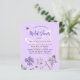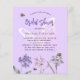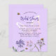 Um fundo violeta. Decorados com abelhas e pintados de flores silvestres em violeta, rosa e uma borboleta grande. Personalize e adicione um nome e detalhes da parte. 1 folha = 1 convite impresso de borda a borda.