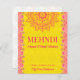 Elegante magenta cerise amarelo brilhante modelo de convite orçamental Mehndi. Cores vibrantes e arrojadas, para uma ocasião especial.